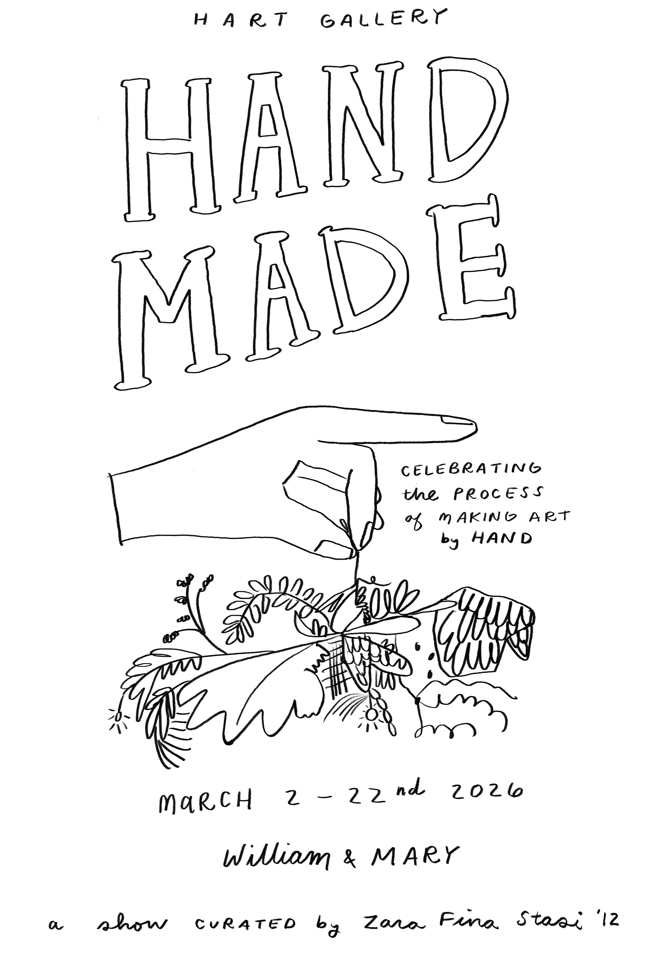 Handmade is an art exhibition celebrating the process of making art by hand. Showcasing pieces created entirely by hand, the show focuses on what it means to be a human and create human work in our time. Featured pieces were created by current W&M students and Zara Fina Stasi, the show’s curator.